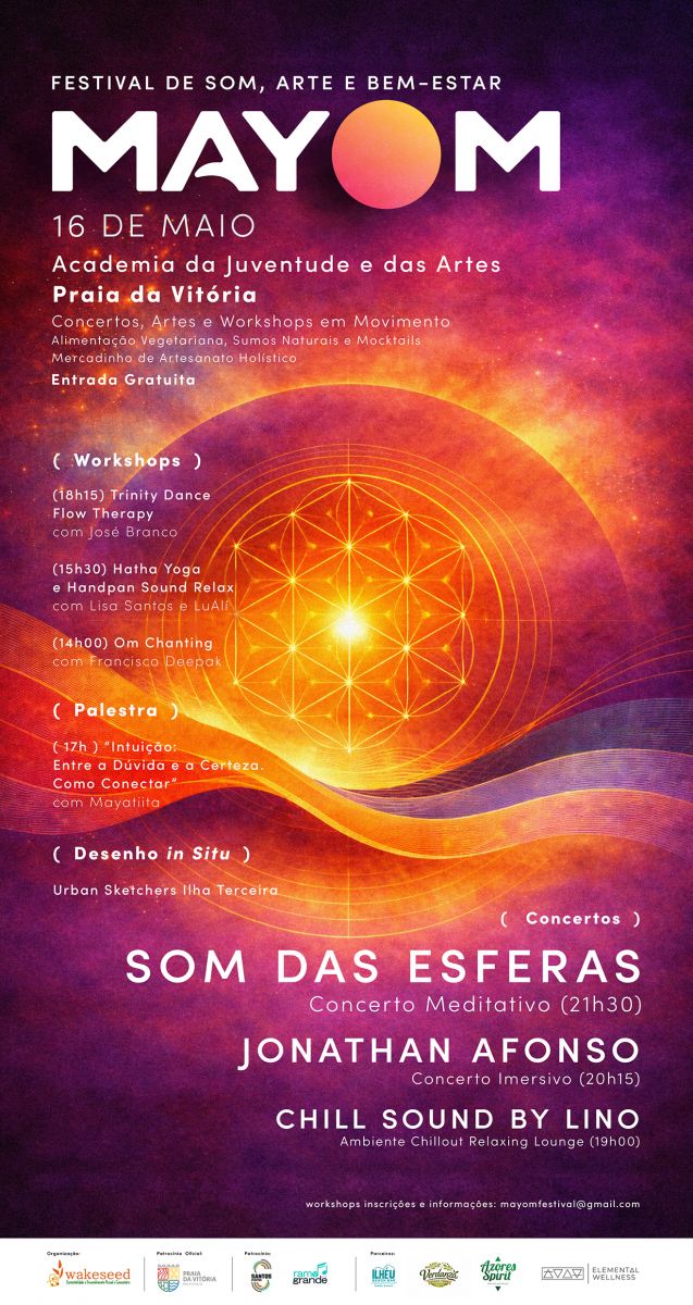 É um evento organizado pela WakeSeed Associação – sustentabilidade e desenvolvimento pessoal e comunitário, em parceria com a Câmara Municipal da Praia da Vitória, que pretende proporcionar uma experiência única promovendo a cultura, a criatividade e o contacto comunitário. Mais do que um festival, o MayOm é um espaço vivo de encontro, onde o som, a música, a arte e o bem-estar se unem para celebrar aquilo que temos de mais essencial: estarmos vivos, presentes e em comunhão uns com os outros.